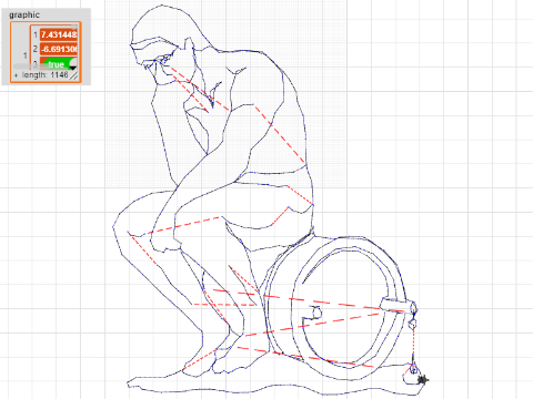 This project is inspired by a 3D-VR work by Michael Aschauer https://m.ash.to/petrosculptures/, wherein he positioned Auguste Rodin's "The Thinker" atop an oil barrel. I utilized this as a background image to outline the contours. I couldn't resist letting the barrel drip, resulting in the figure, deep in thought, sitting in a puddle of oil. The driiping is the last part of the embroidery, so you can delete that by just pressing the "r" button, as described in the code.