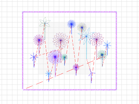 15 flowers with random number of petals, random petal length and random petal width with frame.